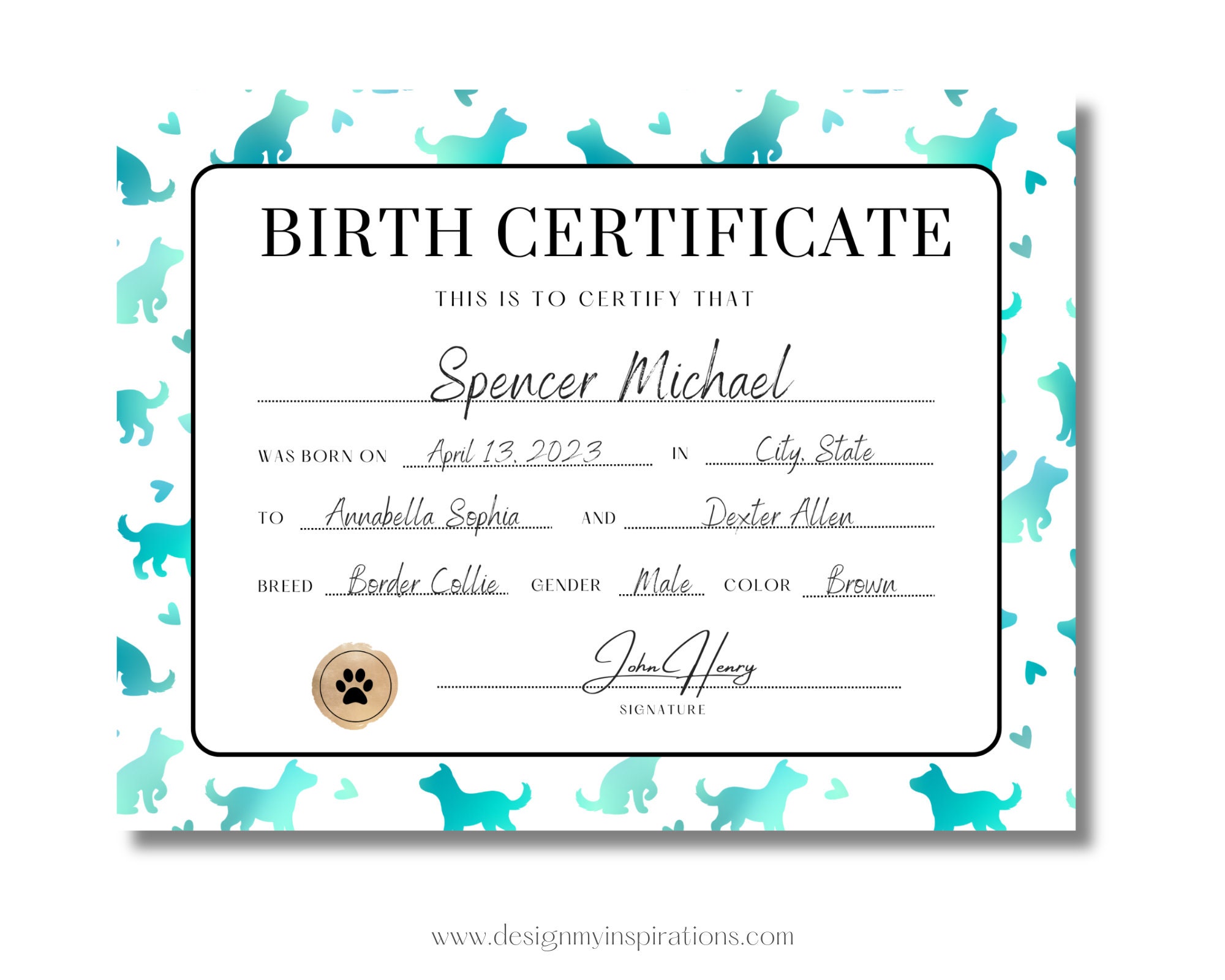 Dog Birth Certificate Template Etsy