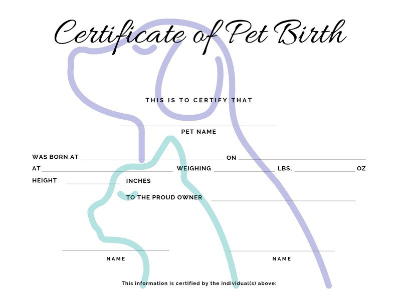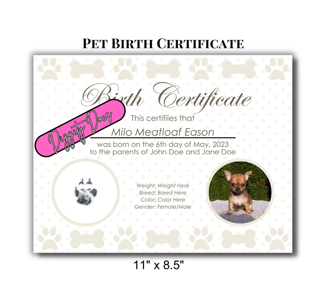 Printable Pet Birth Certificate Digital Download Etsy