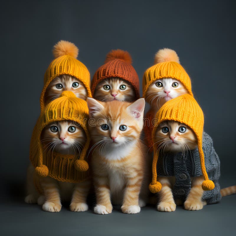 A Group of Kitten Pose for Pet Lovers Stock Photo Image of figurine