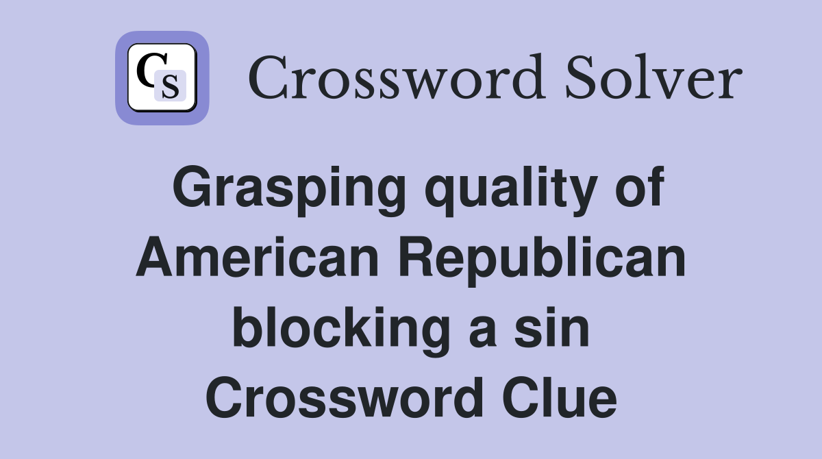 Grasping quality of American Republican blocking a sin Crossword Clue