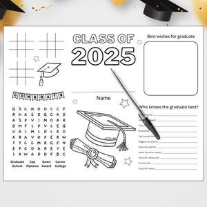 2025 Graduation Placemat Graduation Games Graduation Party Activity