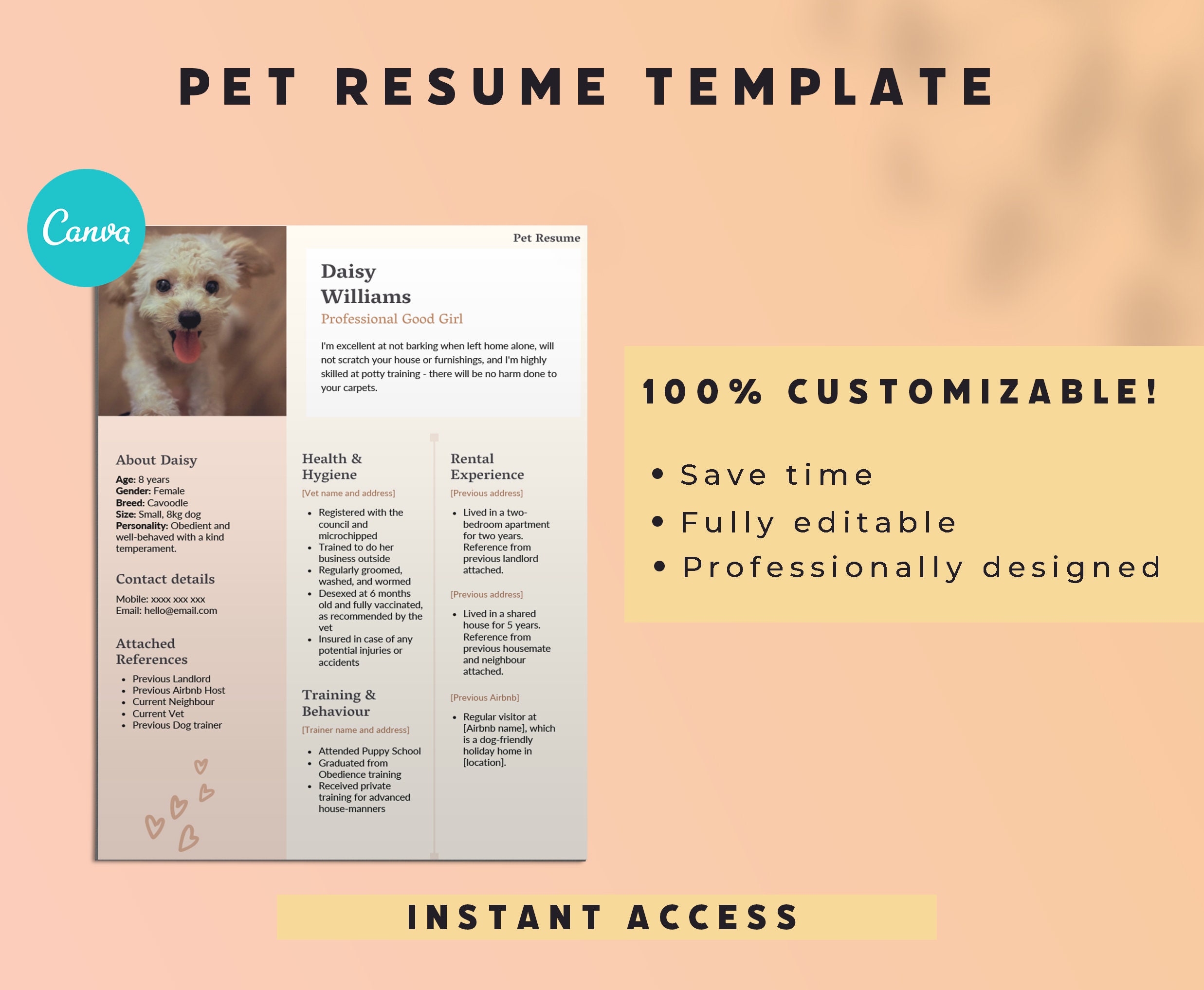 Dog Cv Editable Template Pet Resume for Rental Aplication Etsy