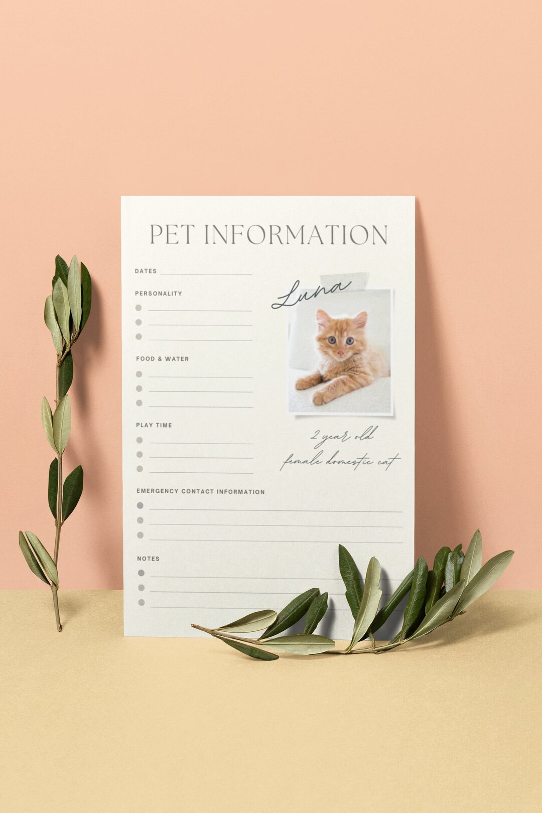 Pet Sitter Instructions Template Printable PDF Planner Pet Sitting