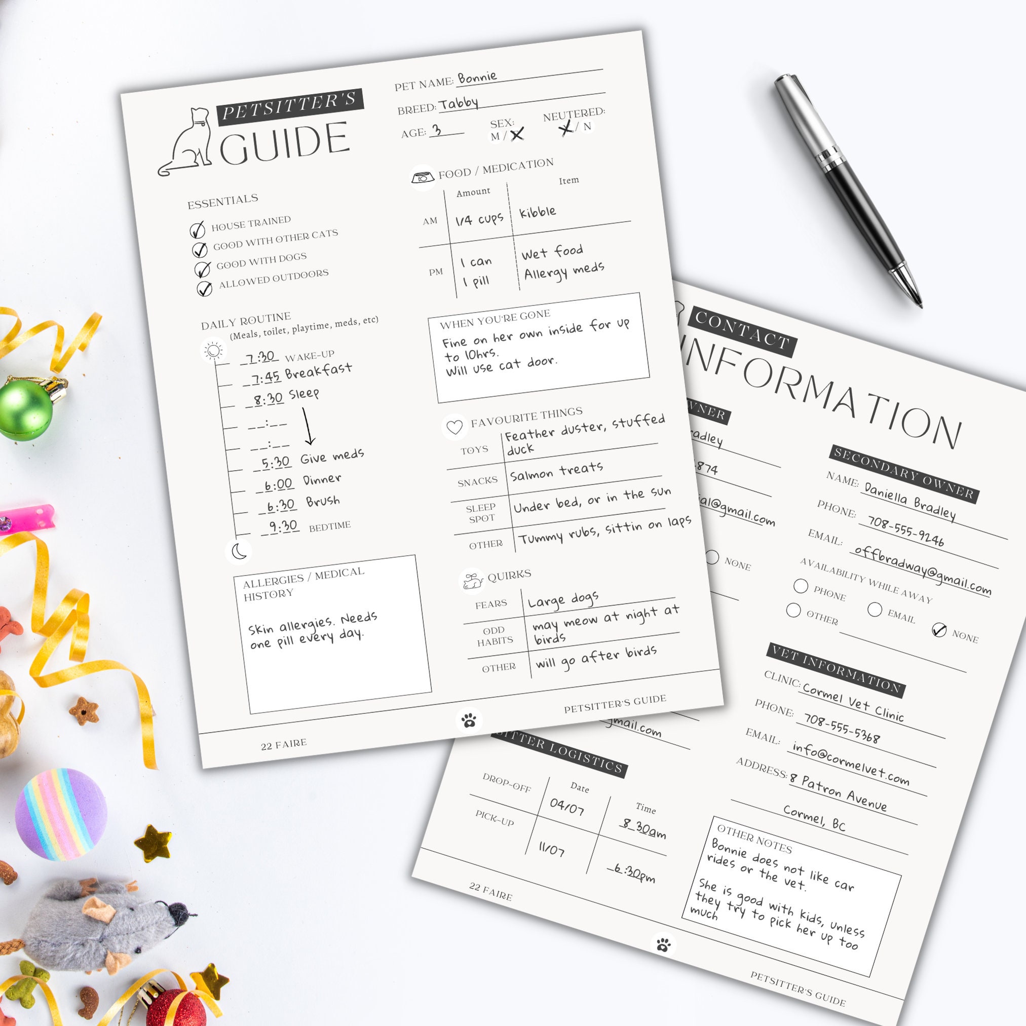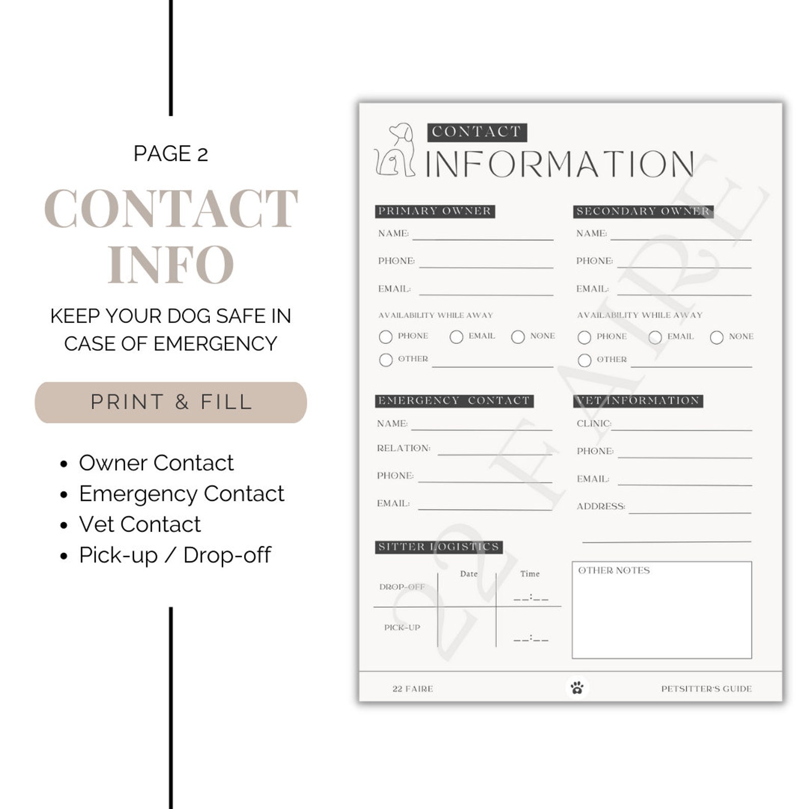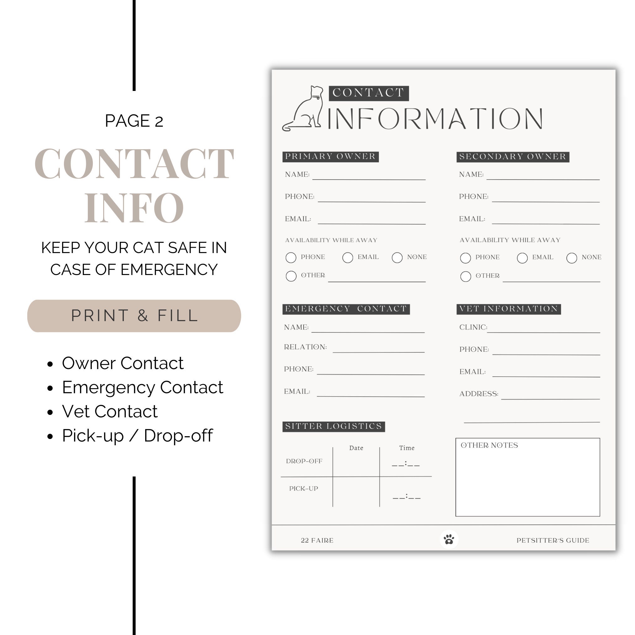 Pet Sitter Schedule Pet Sitter Template Contact Info Printable PDF