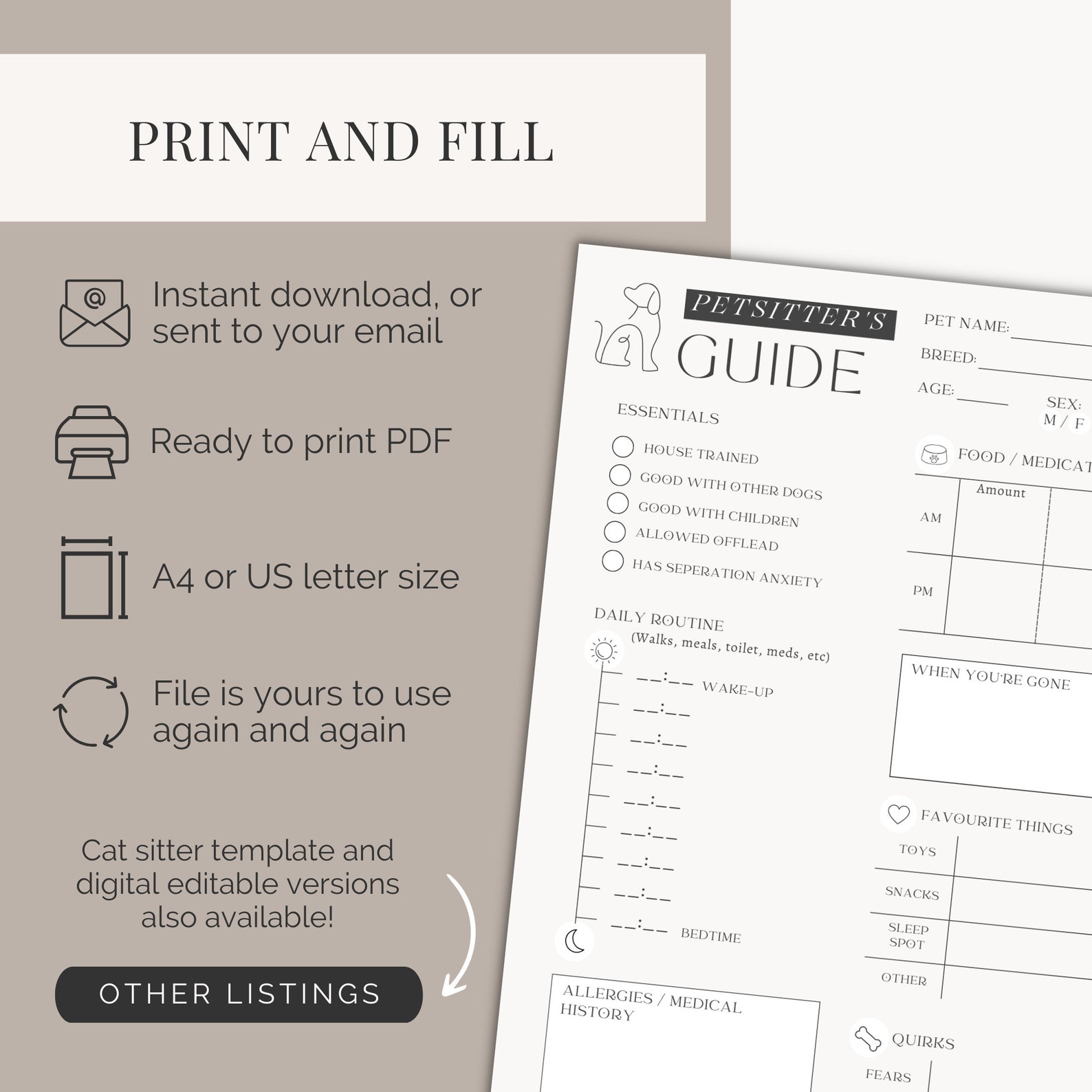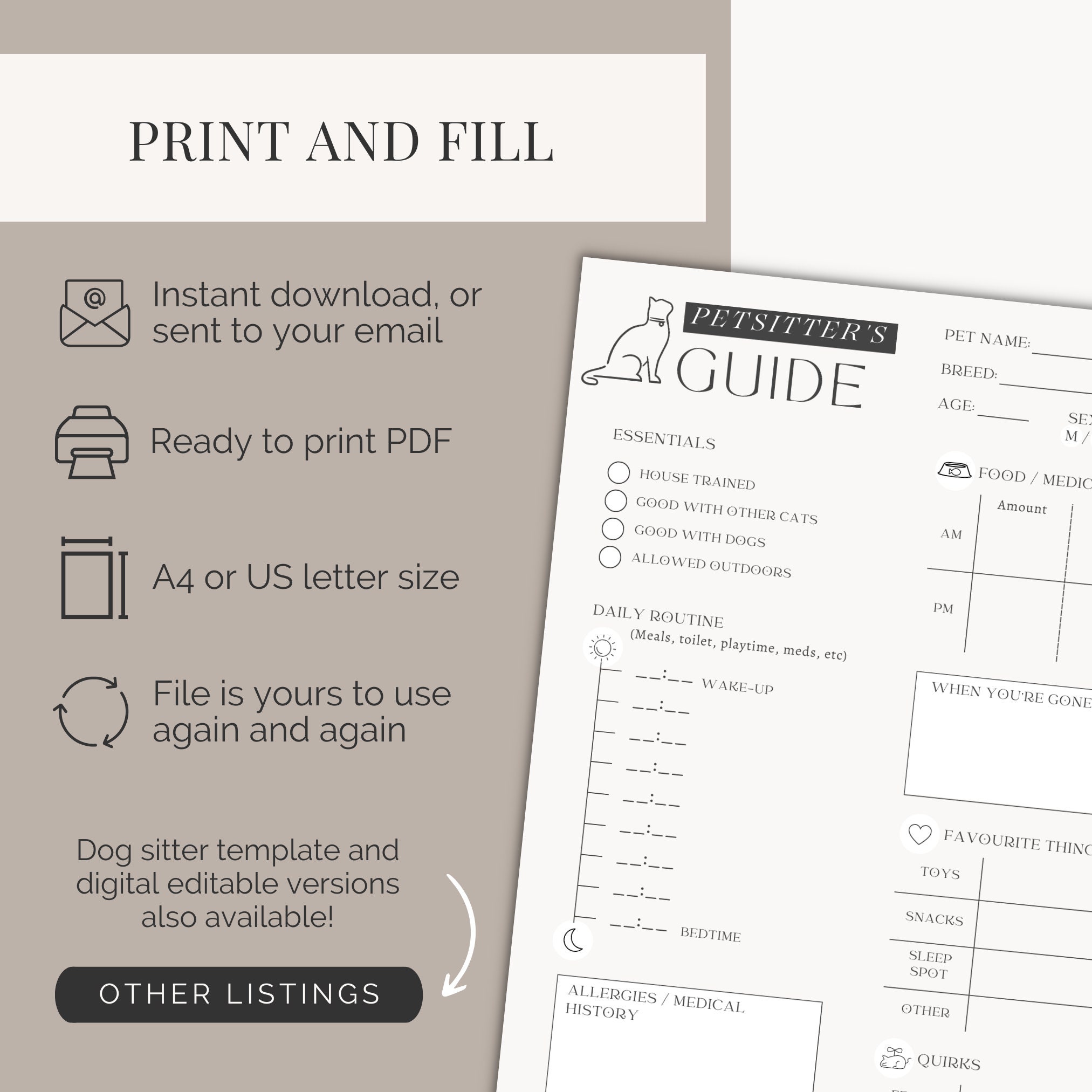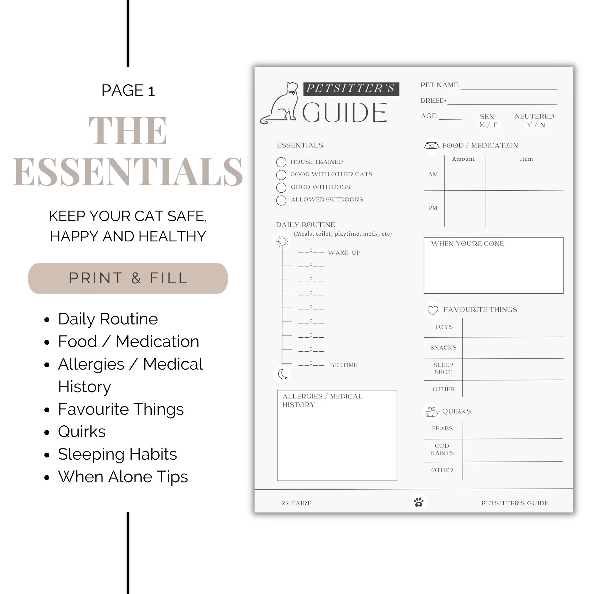 Dog or Cat Sitter Instructions Printable Pet Sitter Template Pet