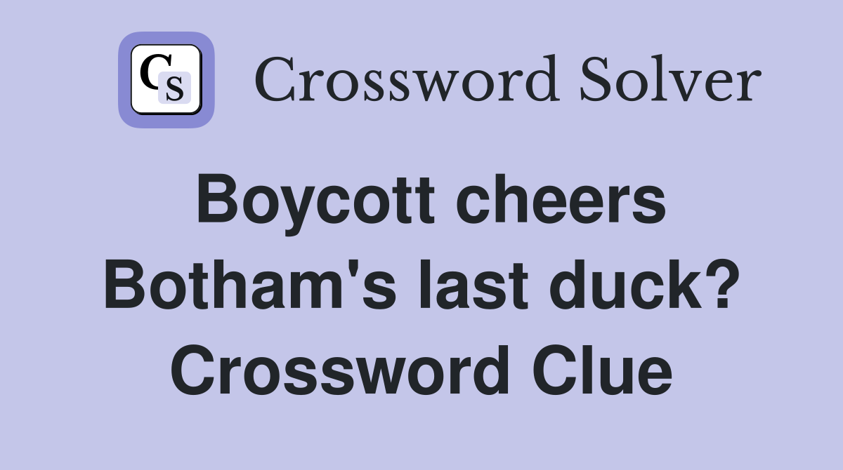 Boycott cheers Botham #39 s last duck? Crossword Clue Answers Crossword