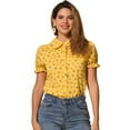DARING DIVA Floral Peter Pan Collar Short Sleeve Blouse M Yellow Purple