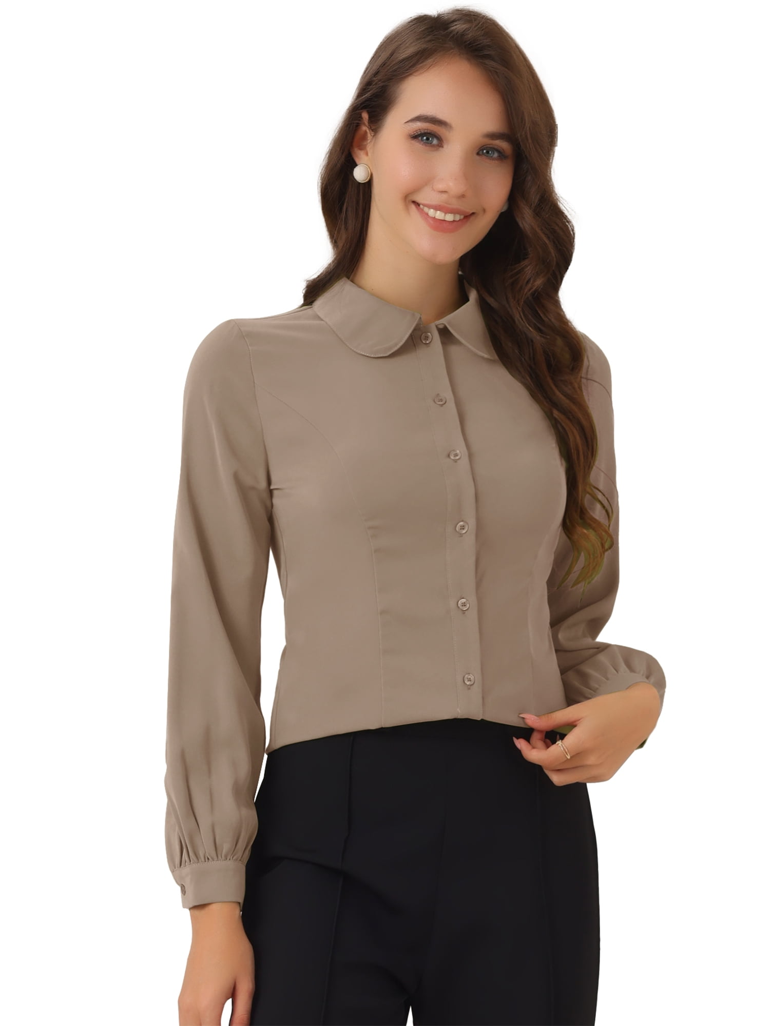 DARING DIVA Women #39 s Peter Pan Collar Long Sleeve Shirt XS Coffee