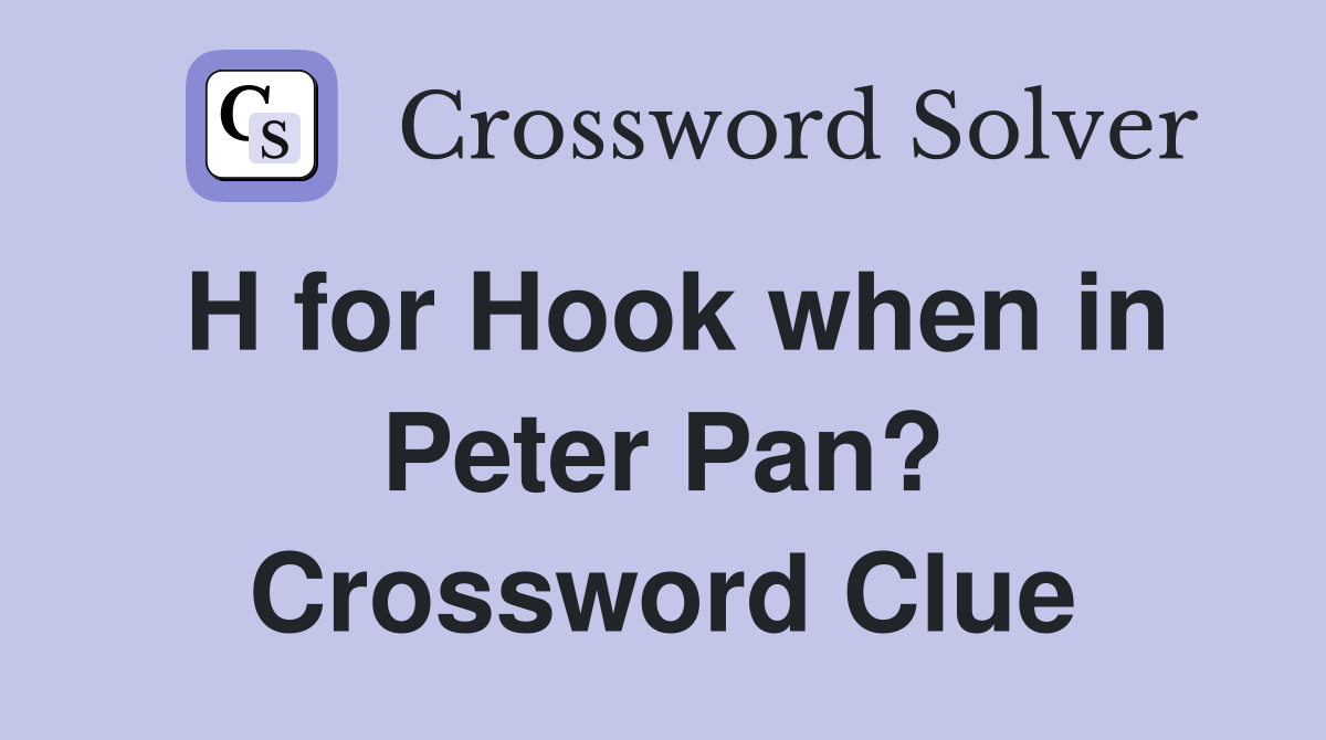 H for Hook when in Peter Pan? Crossword Clue Answers Crossword Solver