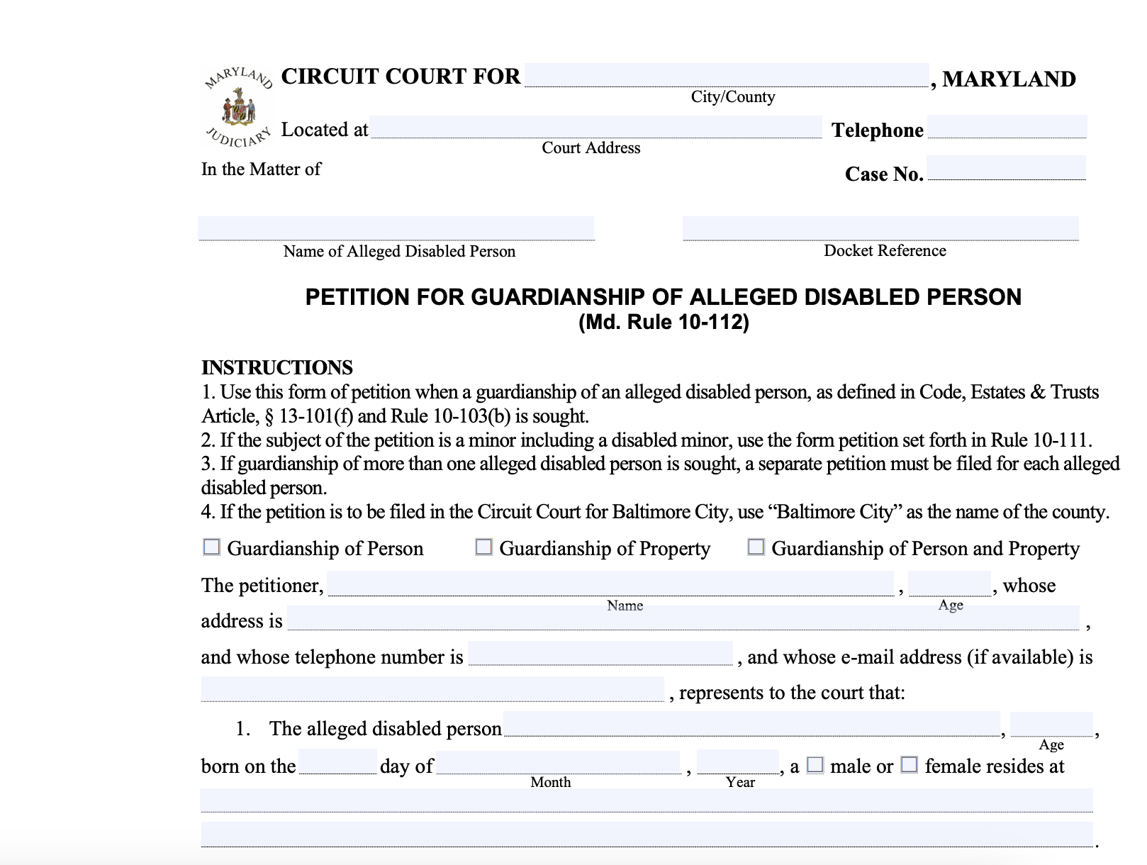 Guardianship Petition for Guardian of DisabledDoc Template