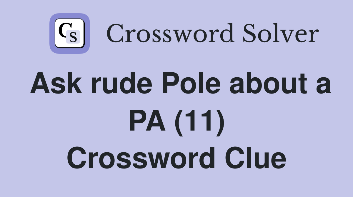 Ask rude Pole about a PA (11) Crossword Clue Answers Crossword Solver