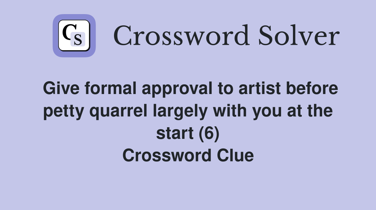 Give formal approval to artist before petty quarrel largely with you at