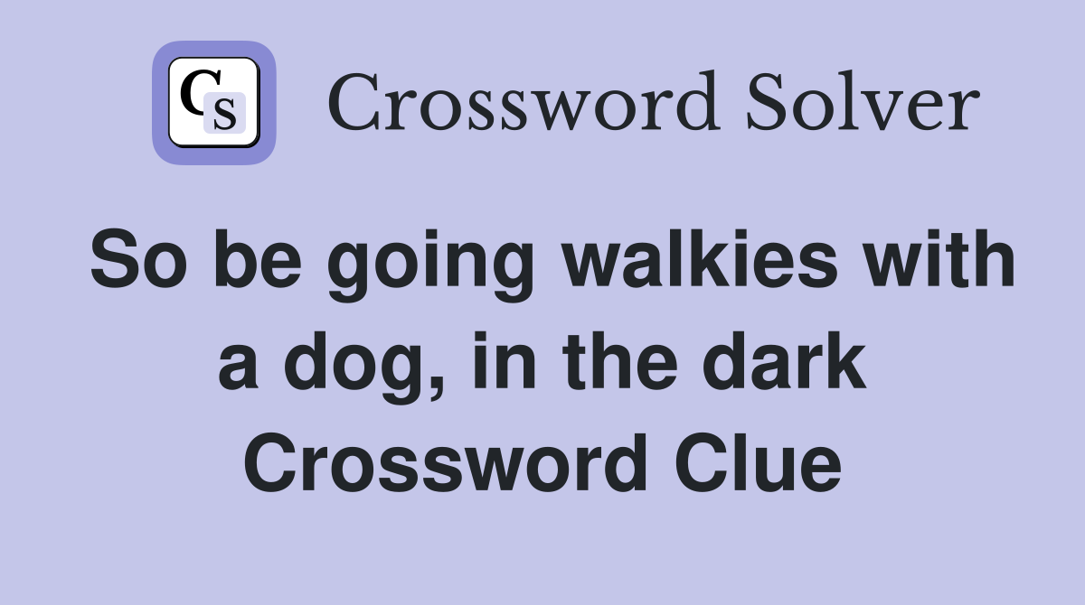 So be going walkies with a dog in the dark Crossword Clue Answers