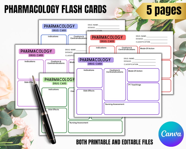 Editable Pharmacology Drug Card Template Pharmacology Cards Nursing