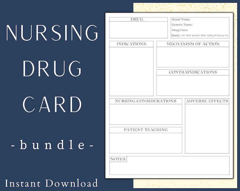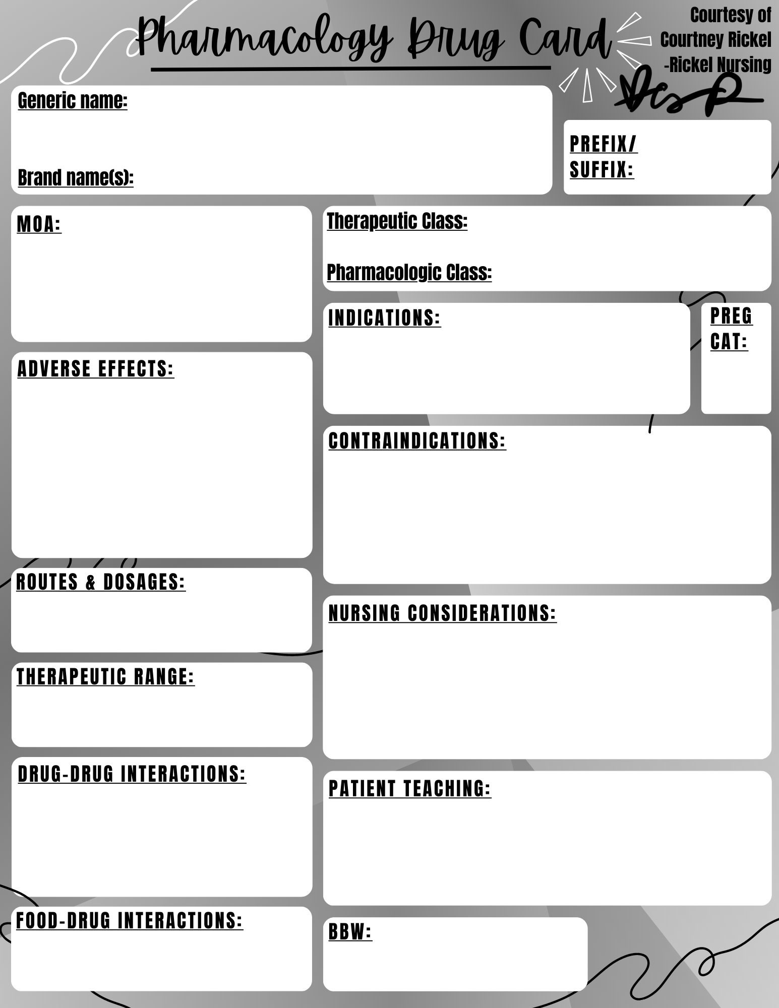 Pharmacology / Drug Card Template for Nursing School Med Surg Etsy