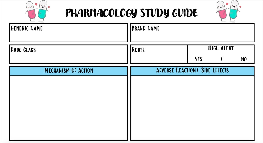 Fillable Pharmacology Template Editable Nursing School Study Template