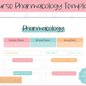 Pharmacology Template Nursing Drug Template Drug Template Etsy
