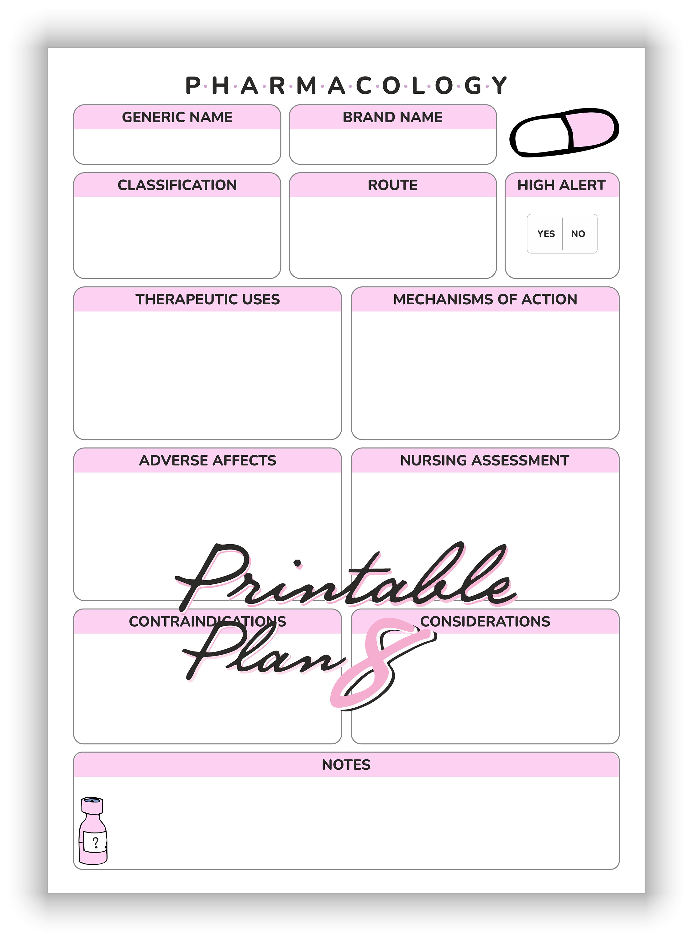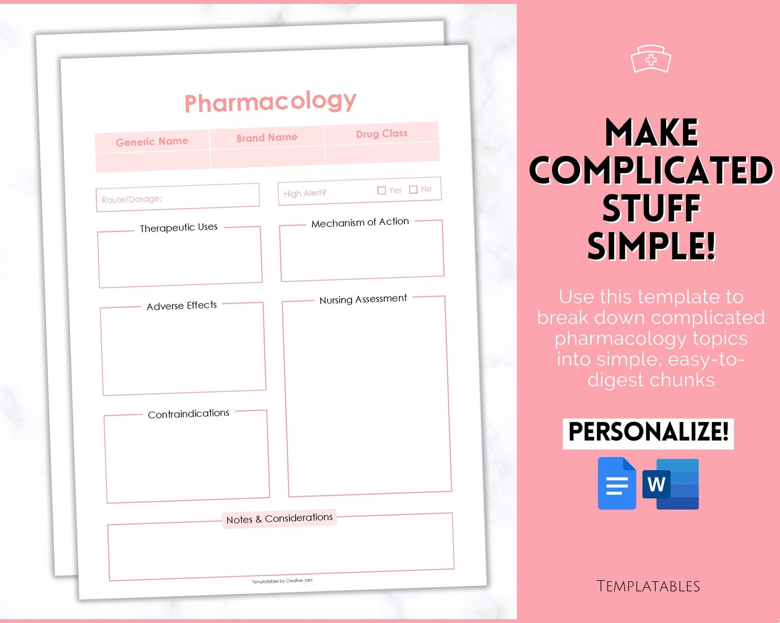 Pharmacology Drug Template 10 Pages Nursing Note Digital Download Only