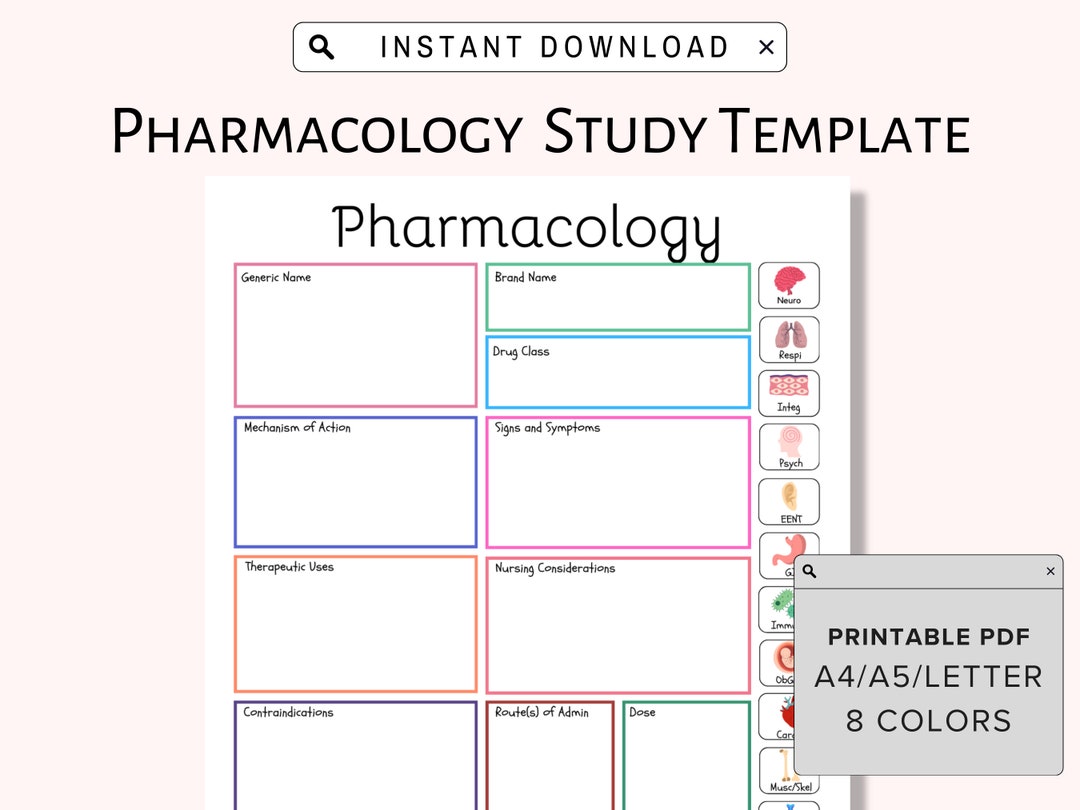Nursing Student Pharmacology Template Printable PDF Etsy