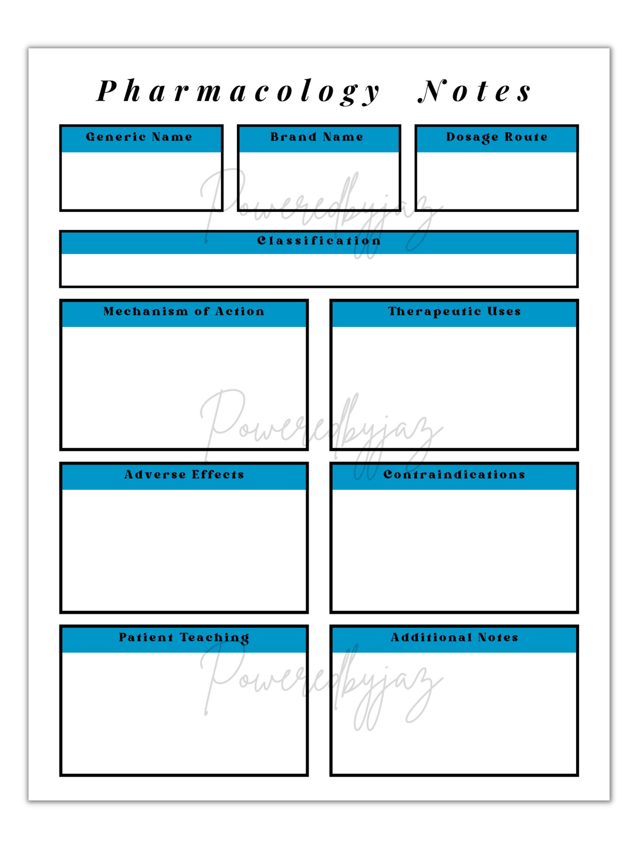 Pharmacology Notes Minimalist Template Instant Digital PDF Printable