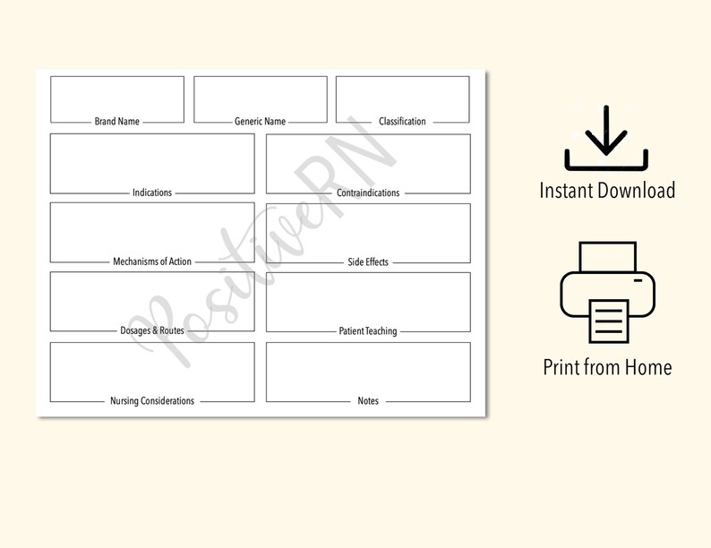 Digital Pharmacology Medication Template Study Sheet Printable Instant