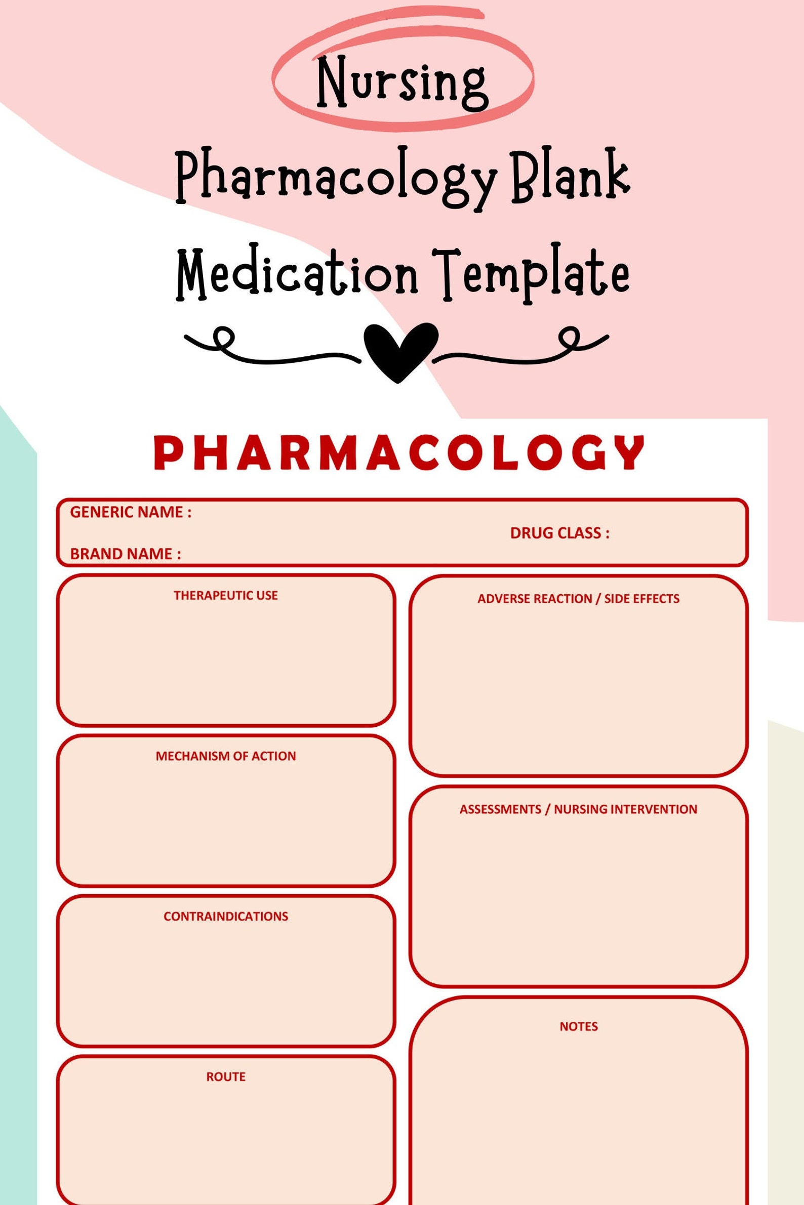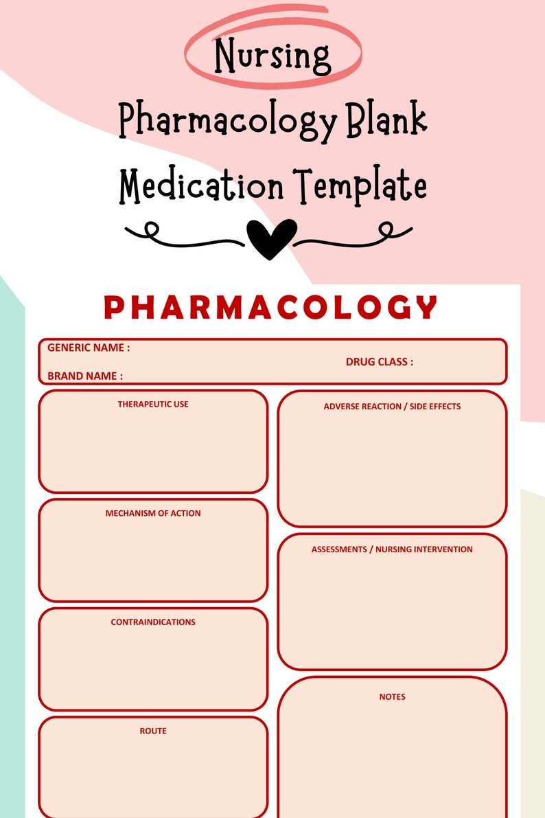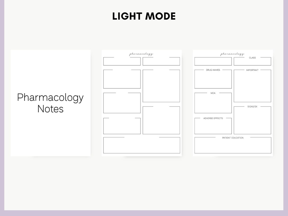 Pharmacology Notes Templates Great for Nursing Students Etsy New