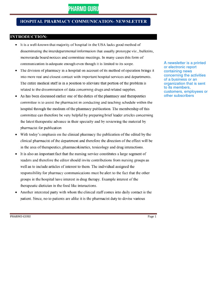 Pharmacy Newsletter How to write a Pharmacy Newsletter? Download this