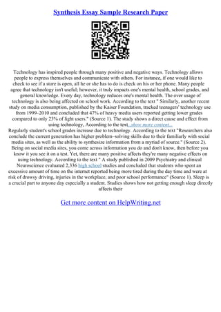 Synthesis Essay Ideas PDF Educational Assessment Education