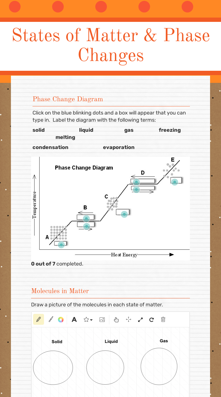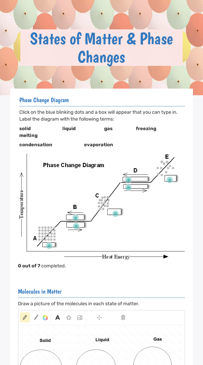 States of Matter Phase Changes Interactive Worksheet by Emily