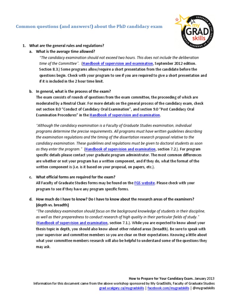 Common Questions and Answers About The PHD Candidacy Exam Feb 2013