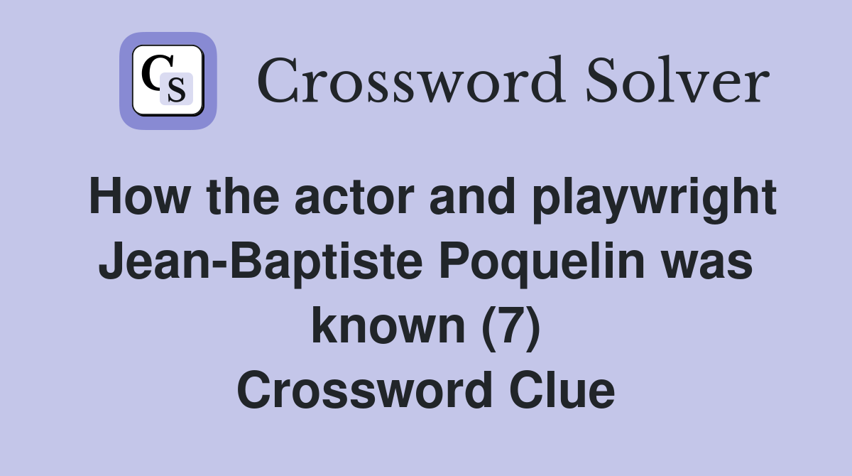 How the actor and playwright Jean Baptiste Poquelin was known (7