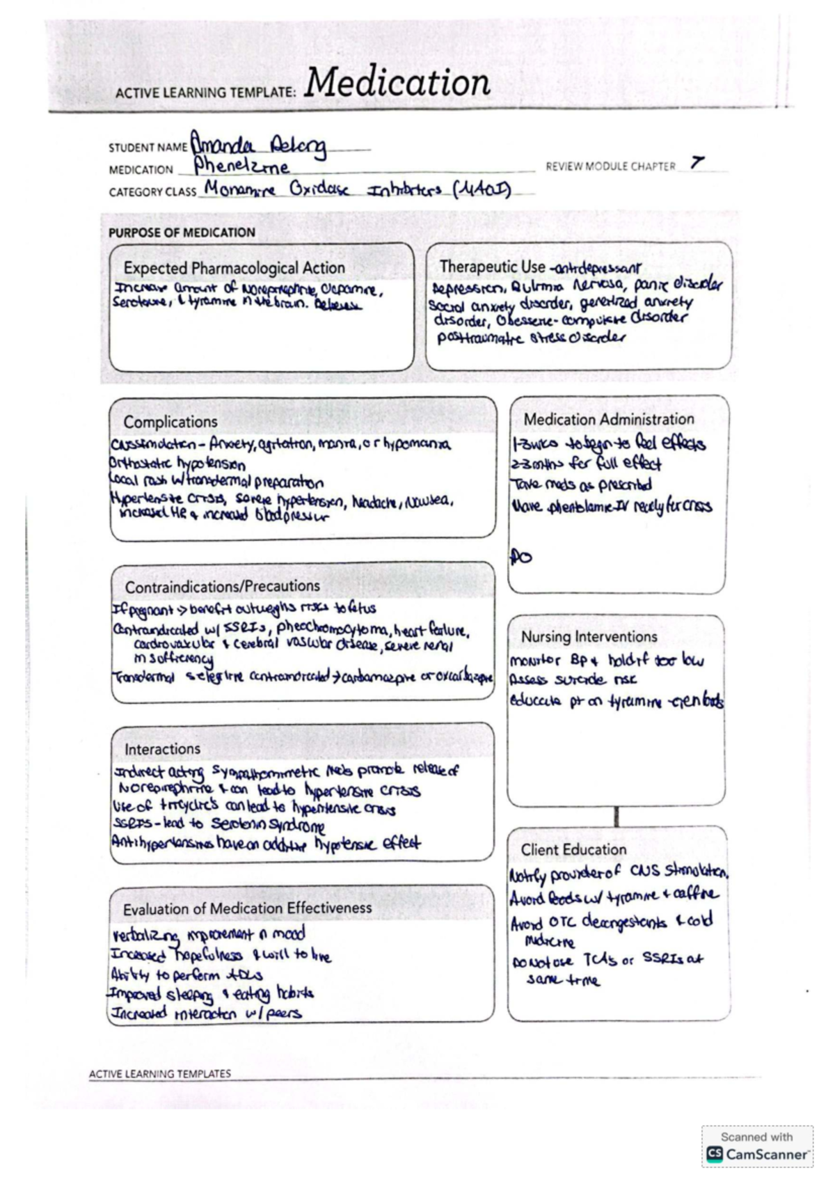 Phenelzine template ACTIVE LEARNING TEMPLATES Medication STUDENT NAME