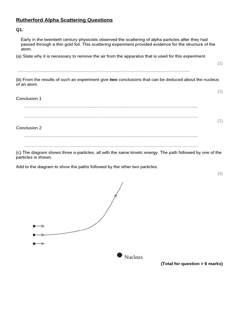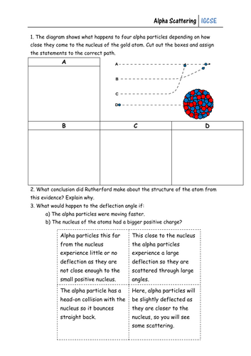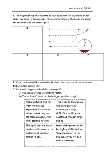 Alpha Scattering Experiment Worksheet Teaching Resources