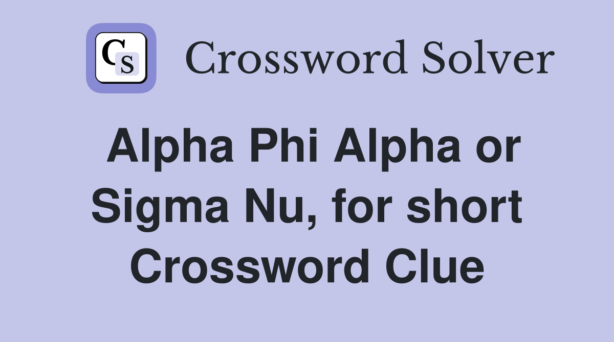 Alpha Phi Alpha or Sigma Nu for short Crossword Clue Answers
