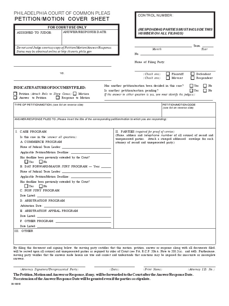 Fillable Online PHILADELPHIA COURT OF COMMON PLEAS PETITION/MOTION