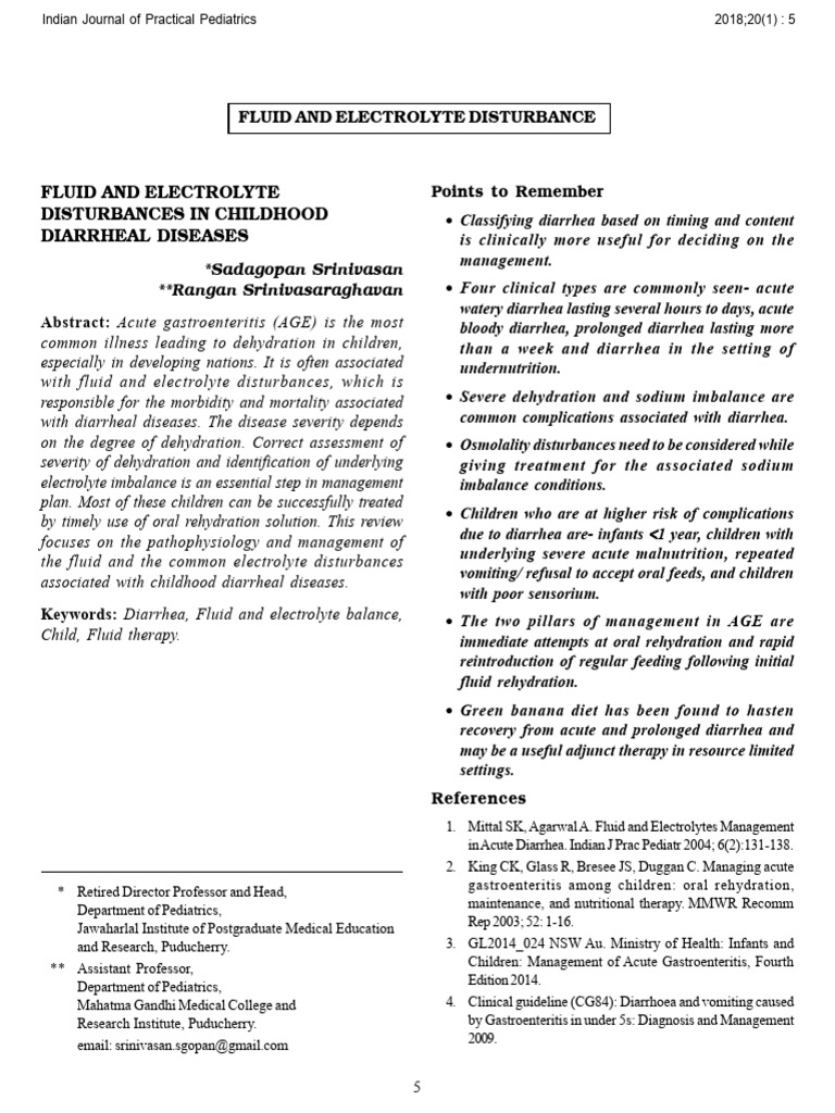 Fluid and Electrolyte Disturbances in Childhood Diarrheal Diseases
