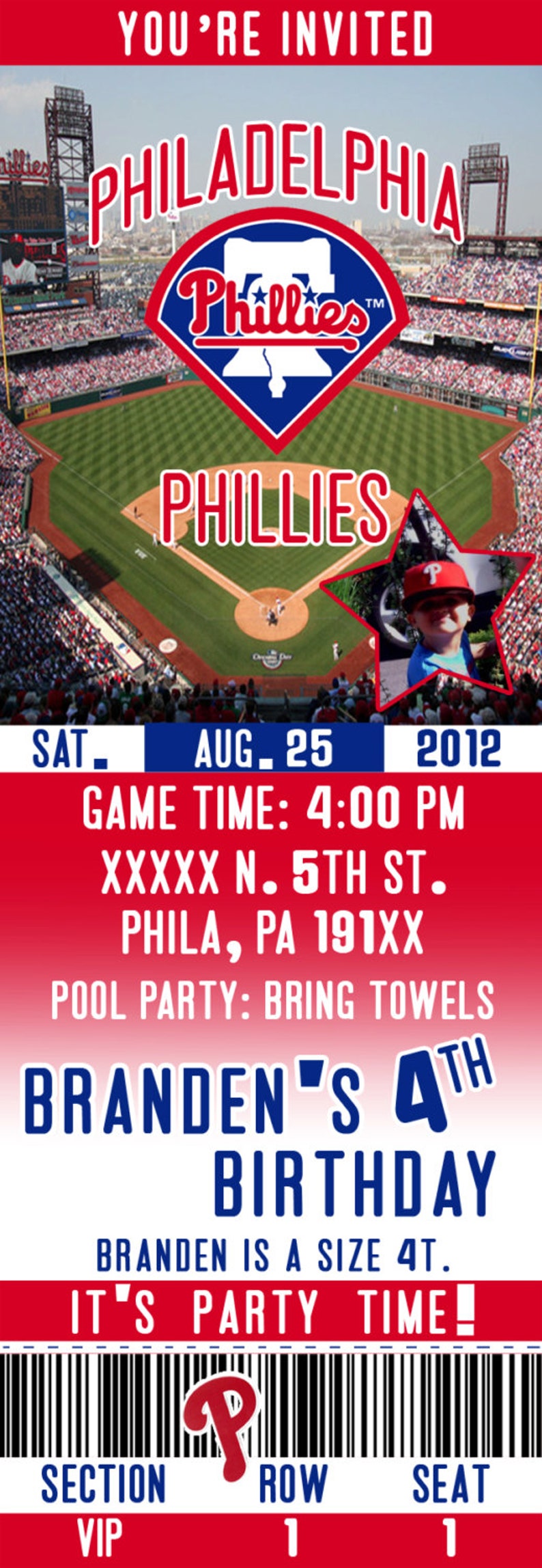 Philadelphia Phillies Ticket Digital Invitation Party Etsy