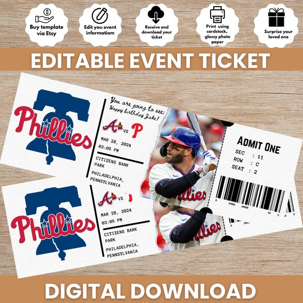 Printable Phillies Ticket Etsy