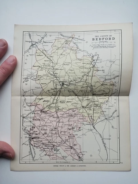 ANTIQUE COUNTY MAP of BEDFORDSHIRE Phillips Handy Atlas 1887 £33 99