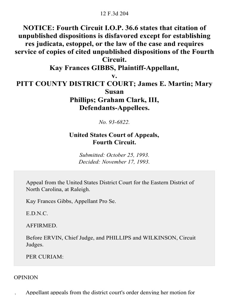 Kay Frances Gibbs v Pitt County District Court James E Martin Mary