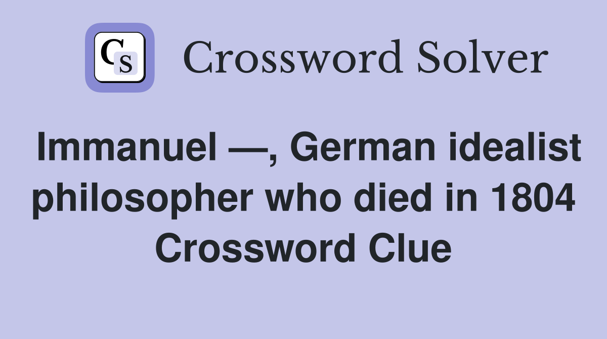 Here are some of the images for Philosopher Immanuel Crossword Clue that we found in our website database.