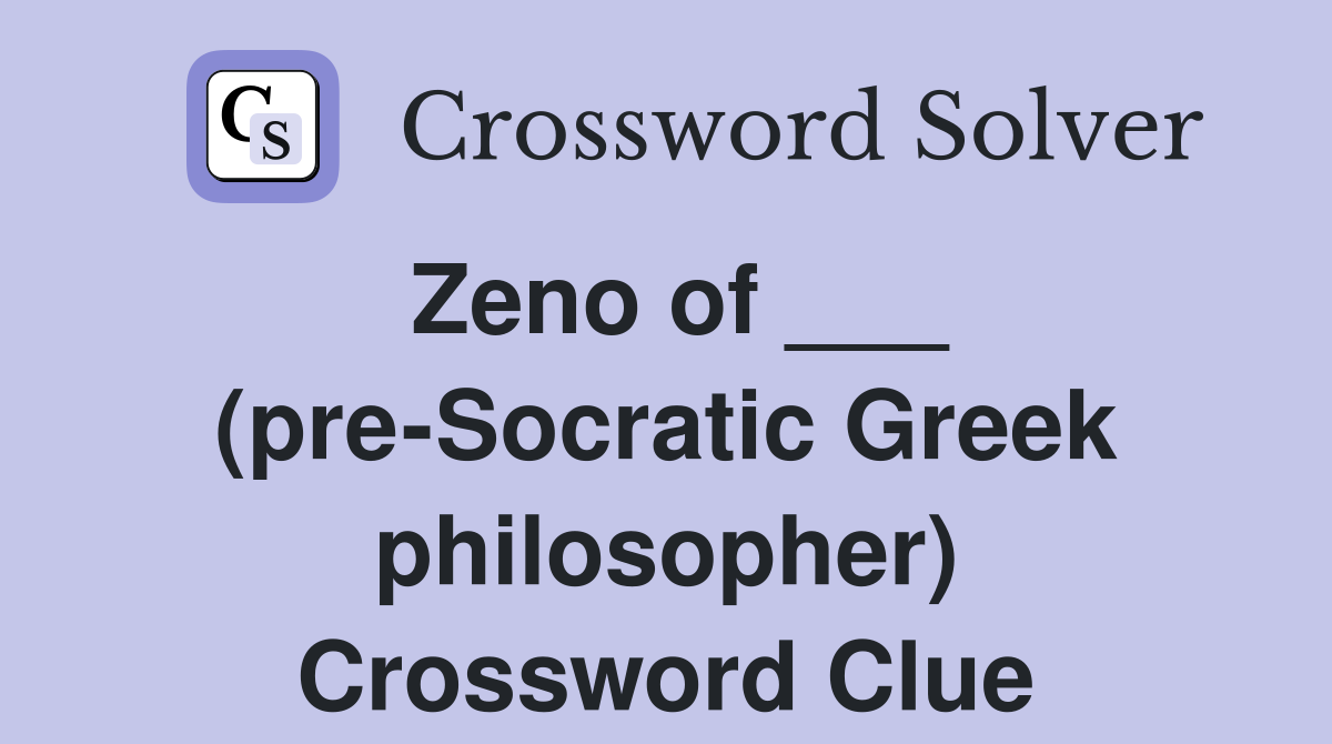 Zeno of (pre Socratic Greek philosopher) Crossword Clue Answers