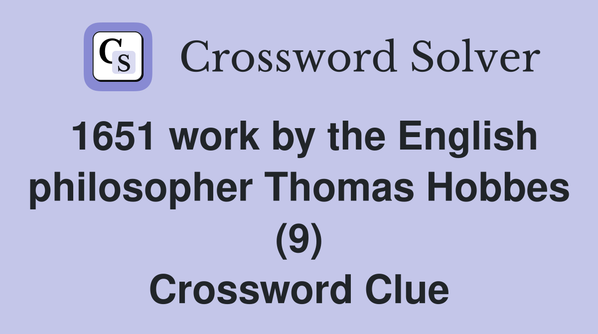 1651 work by the English philosopher Thomas Hobbes (9) Crossword Clue