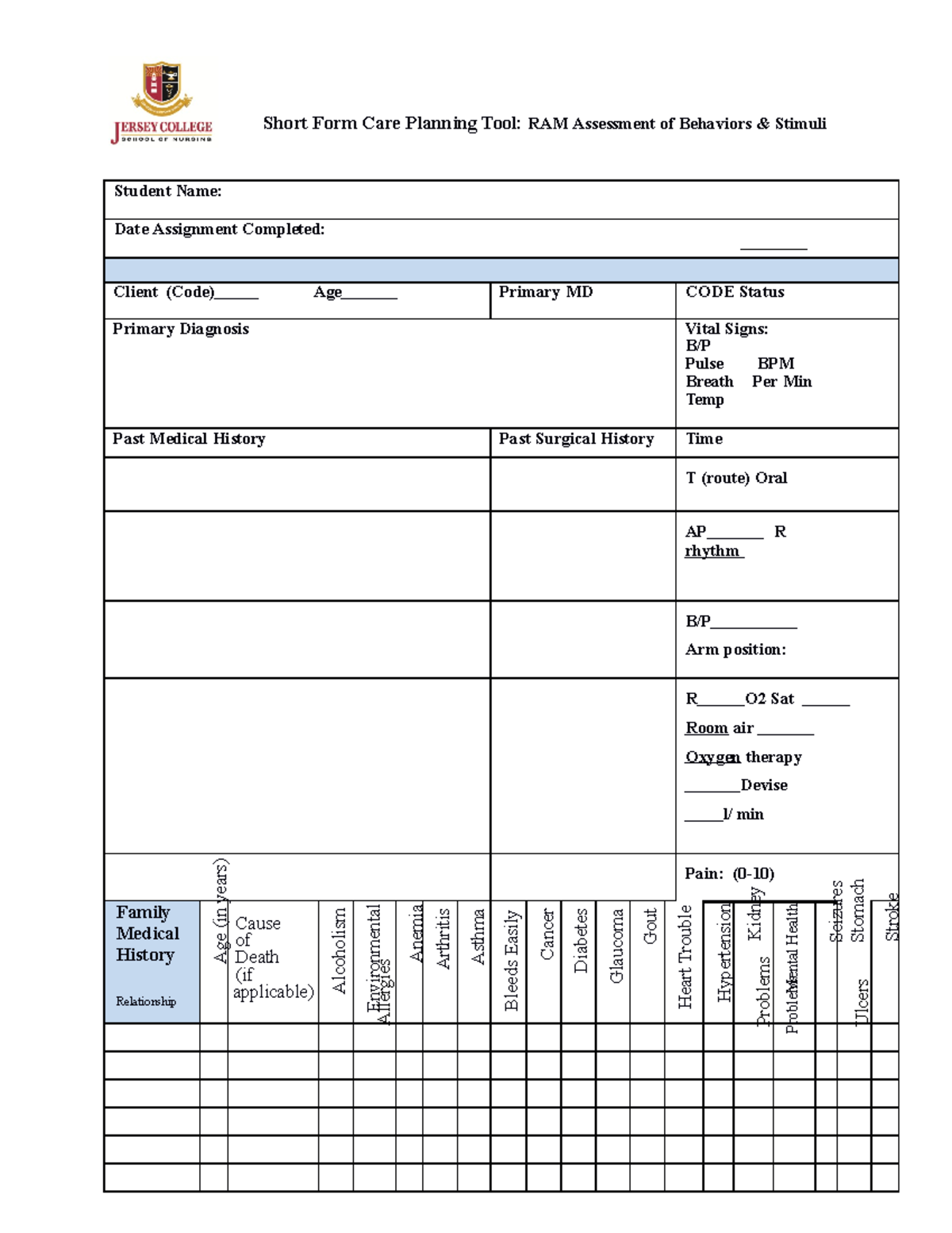 Jersey Short Form Care Plan geri Short Form Care Planning Tool: RAM