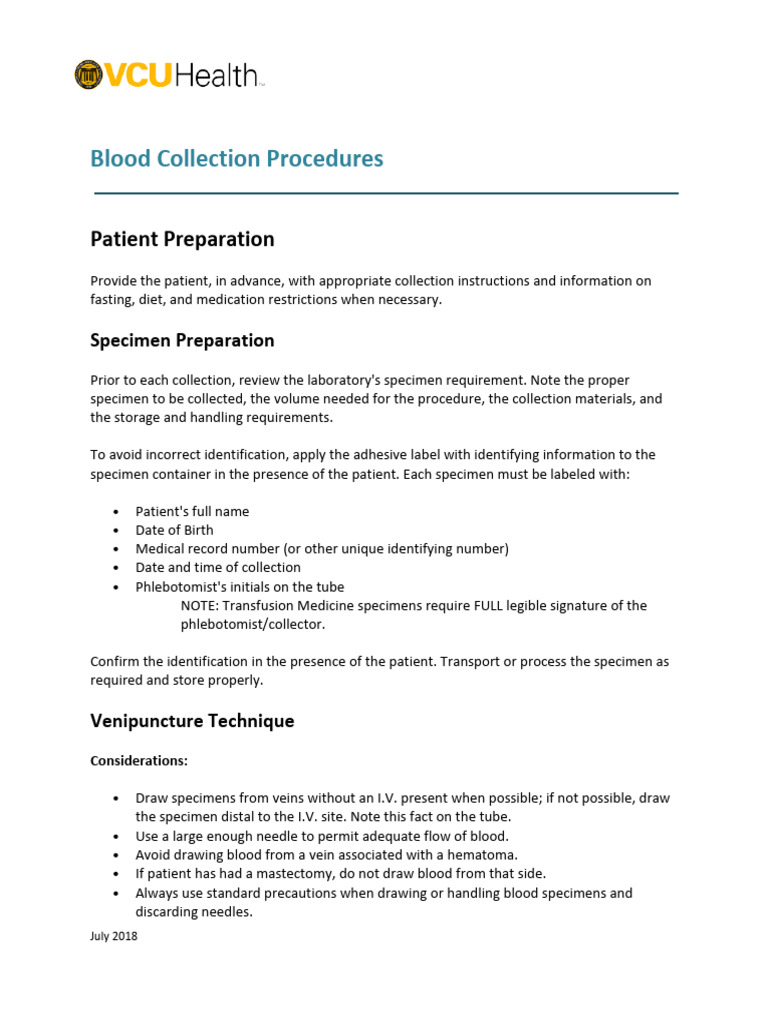 Blood Collection Procedures PDF Medical Specialties Clinical Medicine