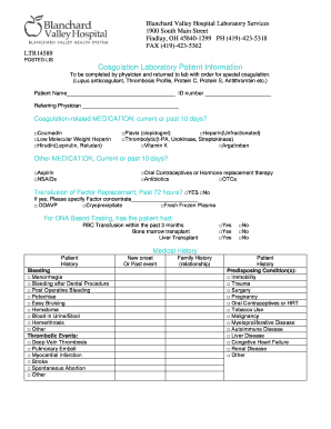 Fillable Online Coagulation Laboratory Patient Information Fax Email