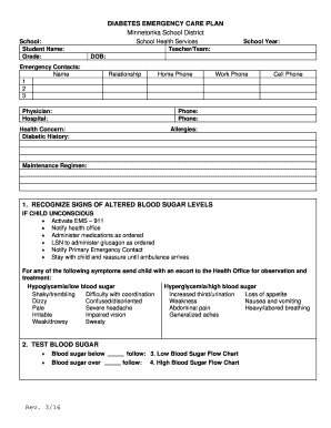Fillable Online DIABETES EMERGENCY CARE PLAN Fax Email Print pdfFiller