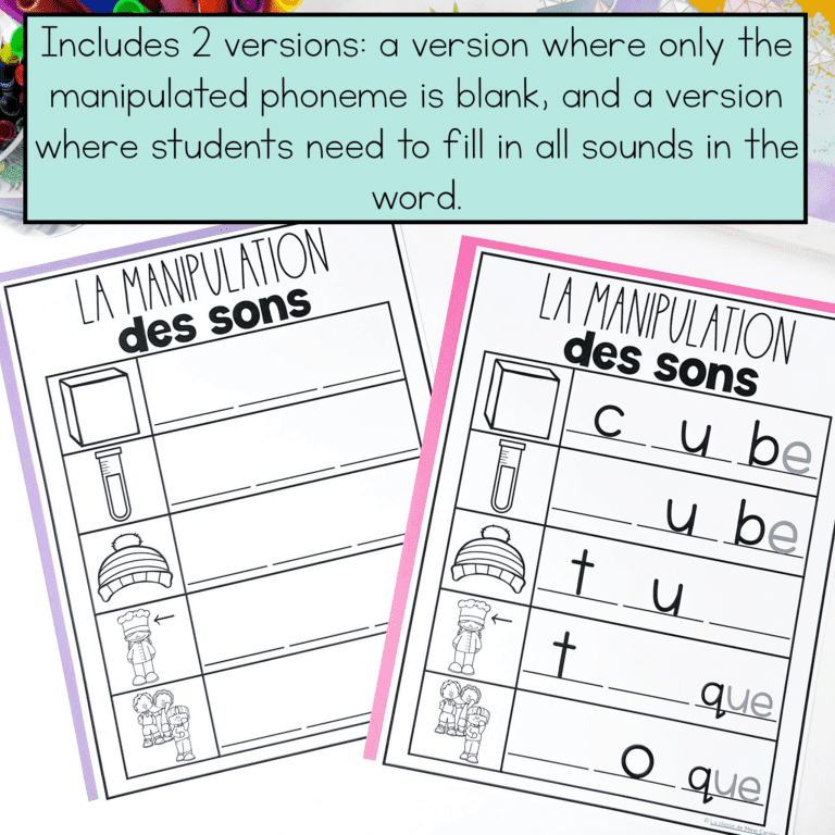 French Phoneme Substitution Worksheets Simple Sounds French Science