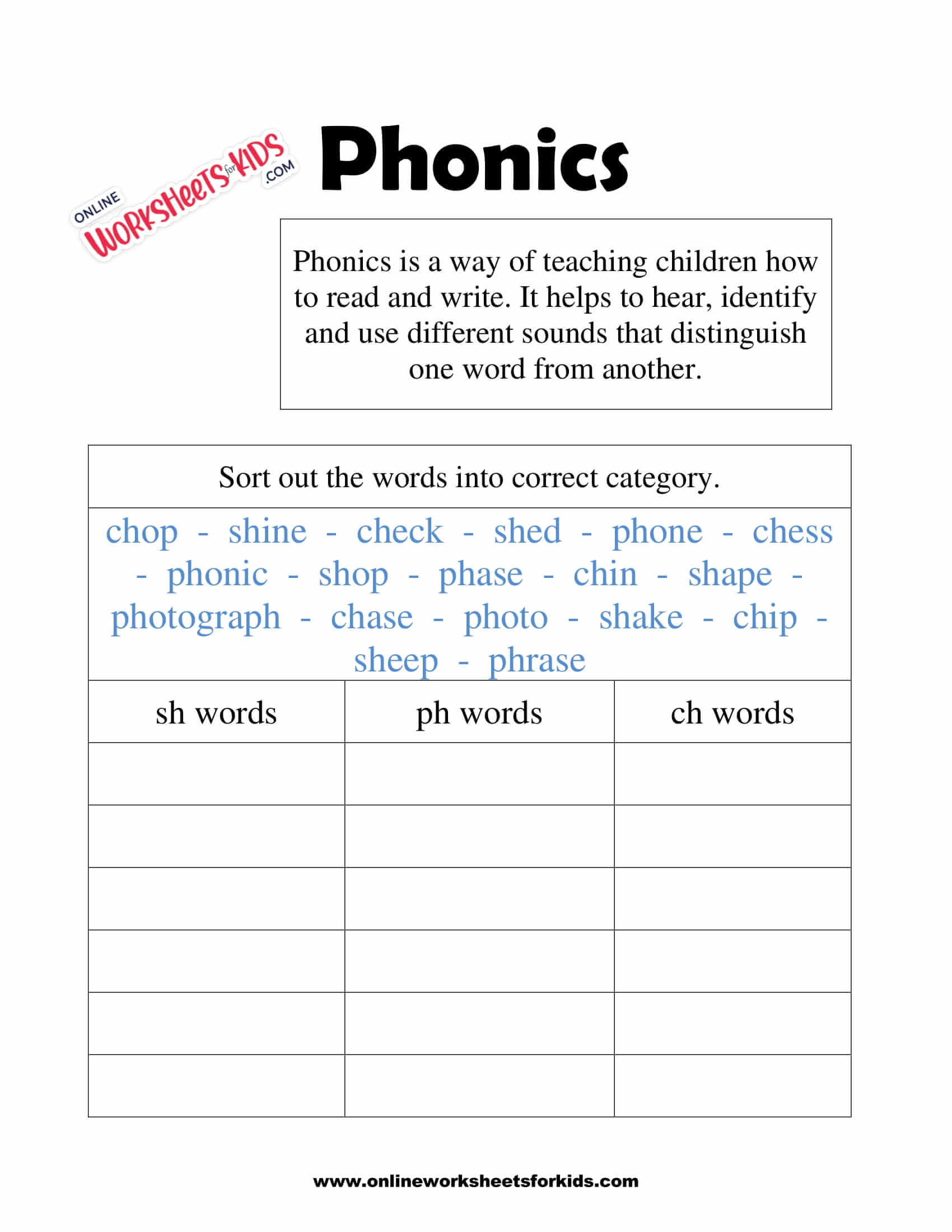 Phonics Worksheets for 1st Graders Online SplashLearn Worksheets