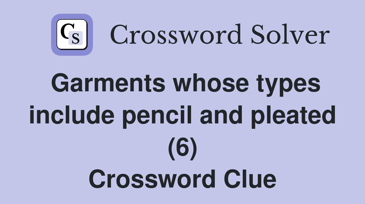 Garments whose types include pencil and pleated (6) Crossword Clue